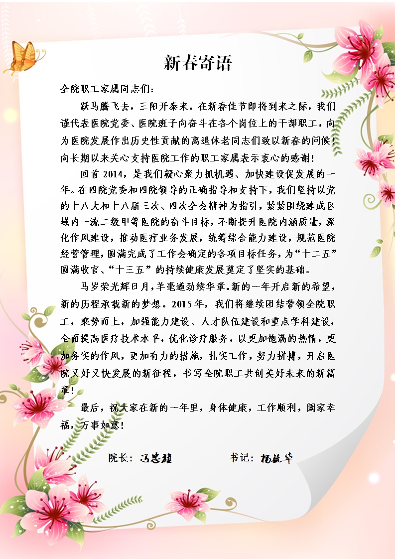 陕西航天医院2015年新春寄语