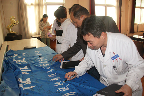 4月27日下午,医院工会举行了“2015责任班组行”启动仪式。工会副主席主持并宣读了“2015责任班组行”活动安排,责任宣誓环节由获得“四院银牌班组”称号的内四科主任寇海林领誓,各科室责任人在流动誓旗上签名。最后,工会主席杨毓华书记讲话,要求将誓旗在科室间传递,促使职工明确责任,牢记责任并履行责任。