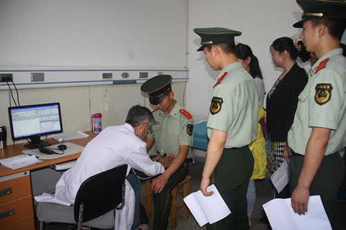 按照西安市卫生局关于二级以上医院与武警西安支队医疗机构开展对口支援工作通知的要求,我院将负责为武警西安支队第三大队十中队全体官兵提供对口医疗支援保障。医院领导高度重视此项工作,与武警西安市支队第三大队十中队签订了对口支援保障协议书,按照协议要求制定了做好支援保障工作安排,在设备信息科、计财部、保健办及相关科室的大力协作下,此项工作正式启动。6月15、16日保健办为十中队士官以上近20人进行了健康体检。